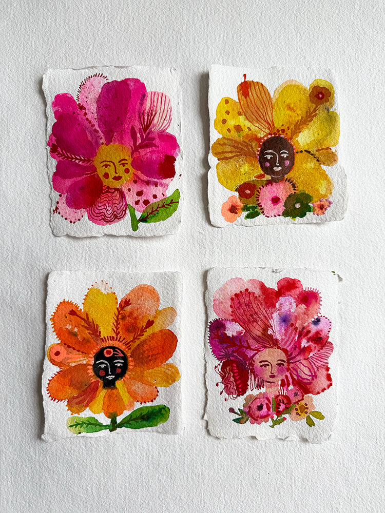 PETAL HEADS set of 4 ORIGINAL PAINTINGS